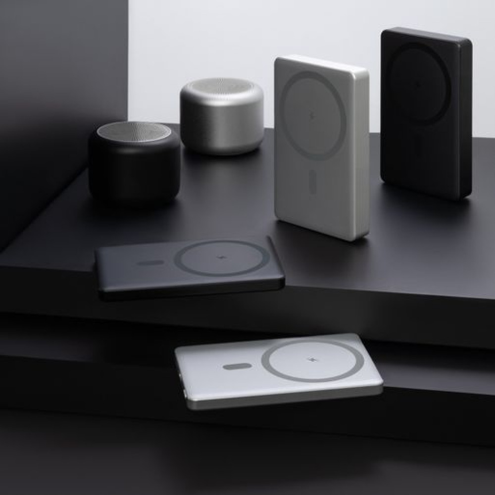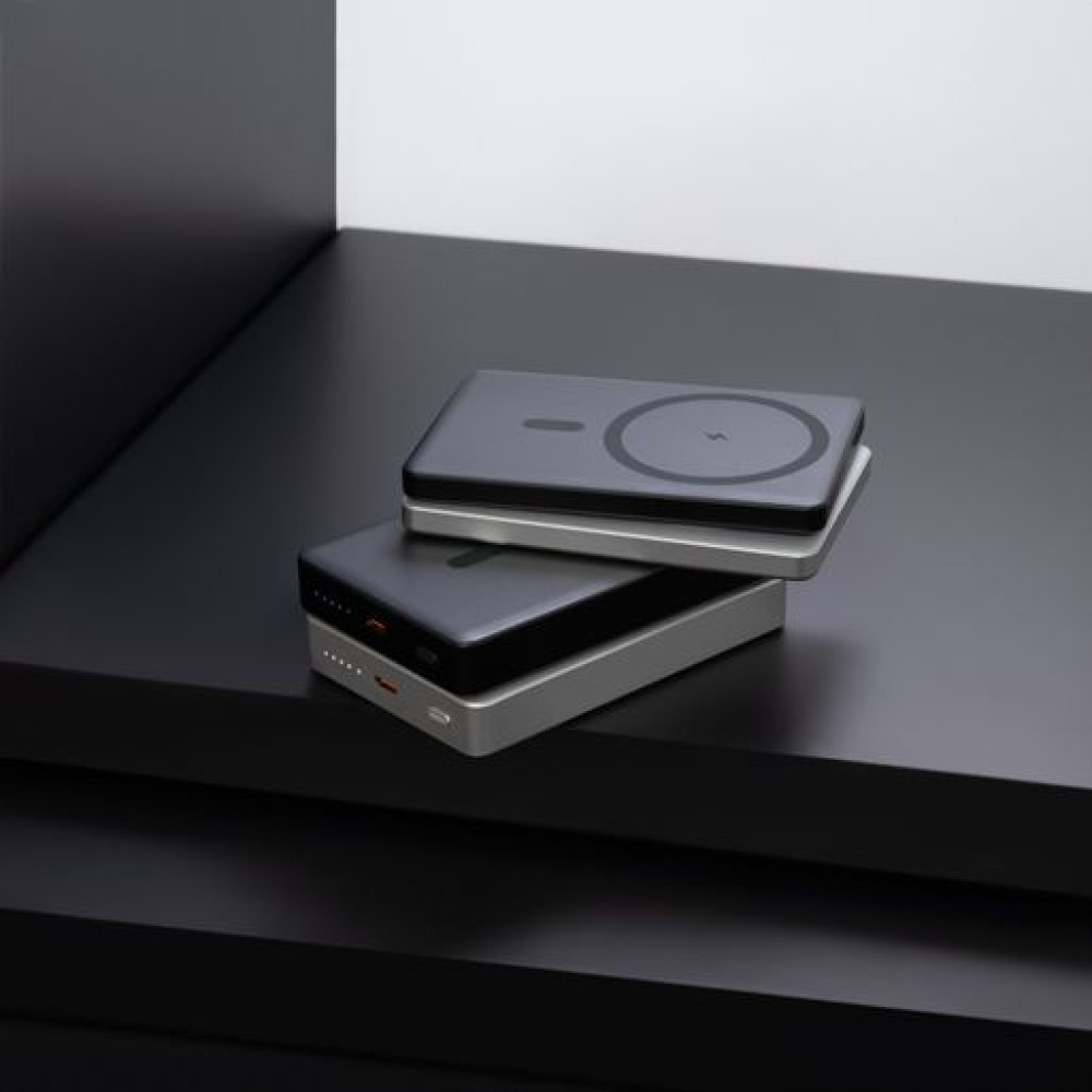 Благодаря усиленному магниту MagSafe, ваш iPhone будет надёжно закреплён на аккумуляторе, обеспечивая стабильное и эффективное пополнение энергии. Прочный алюминиевый корпус не только придает устройству премиальный вид, но и защищает его от повреждений. Техническая информация размещена на боковой грани.