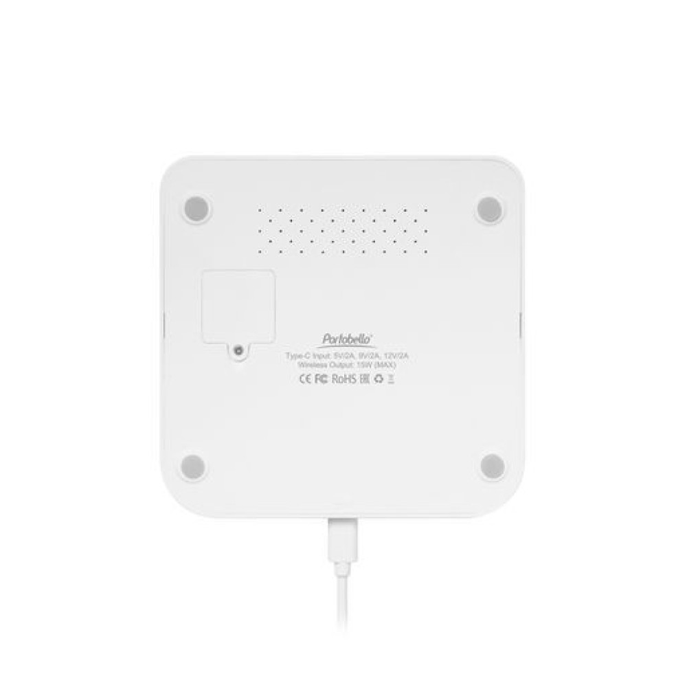 Для поддержки одновременной работы беспроводной зарядки смартфона + часов/будильника и - адаптер с быстрой зарядкой QC 3.0.
