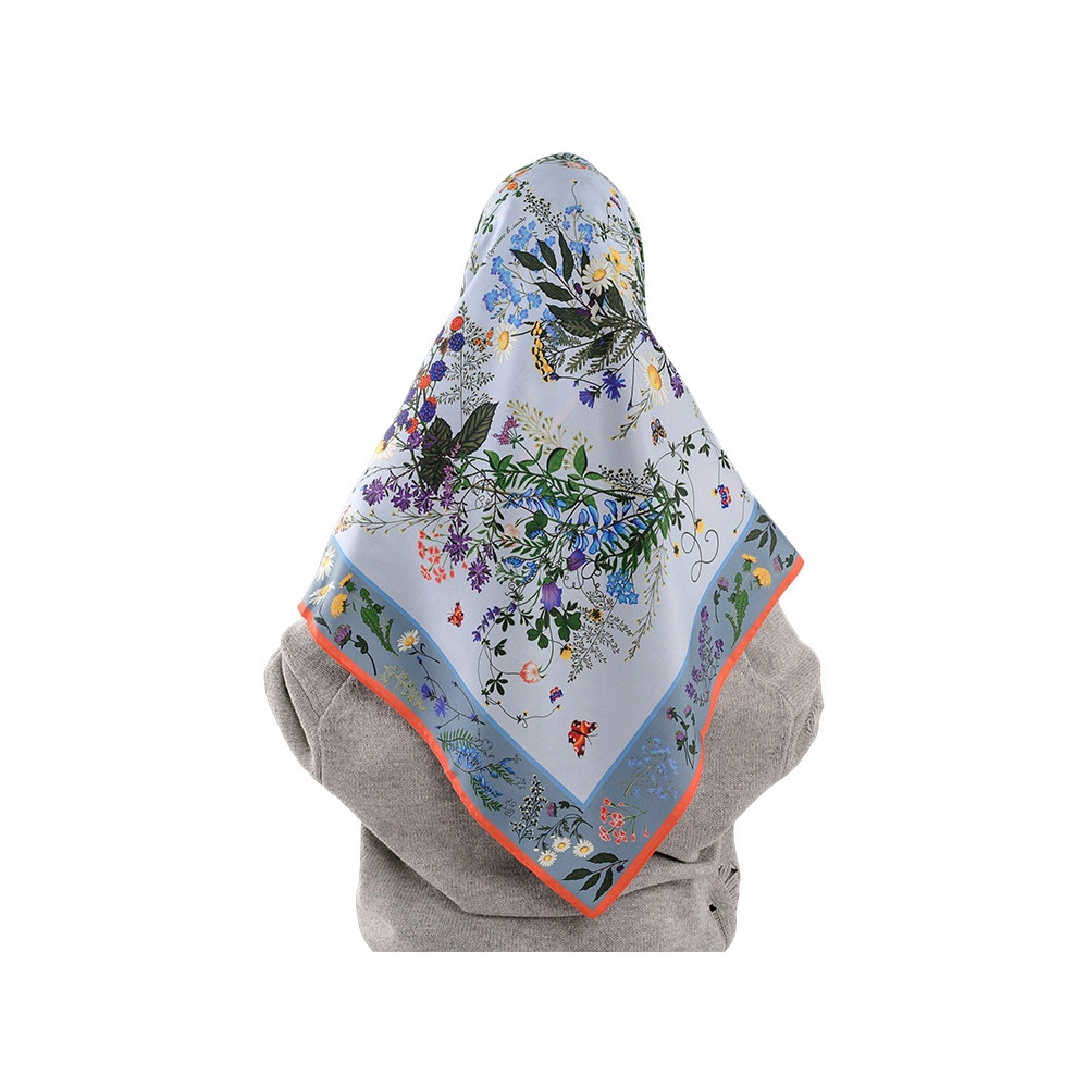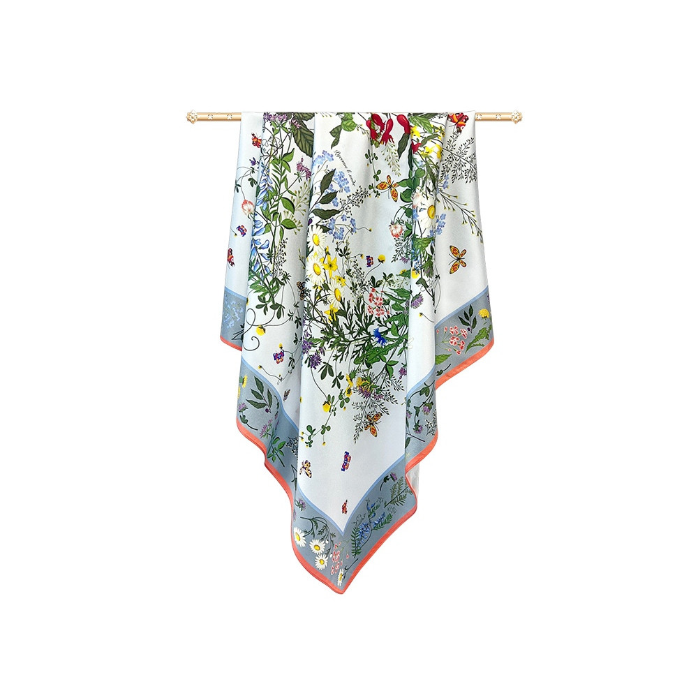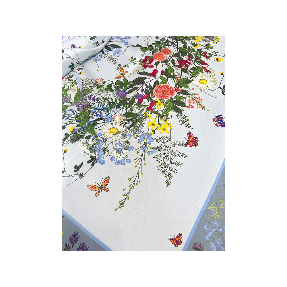 Яркое благоухающее разноцветье русского полевого букета воплощено в шелковом платке, где собраны изображения более 20 цветов и трав.