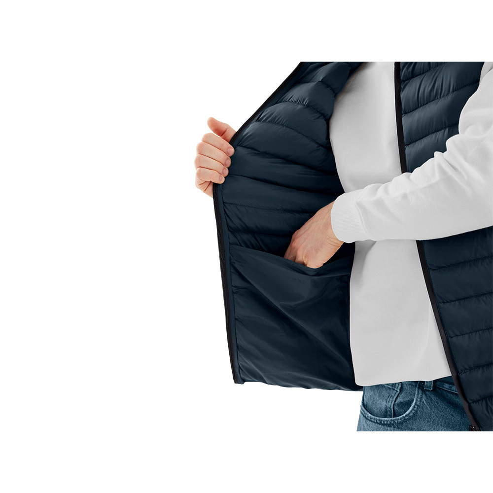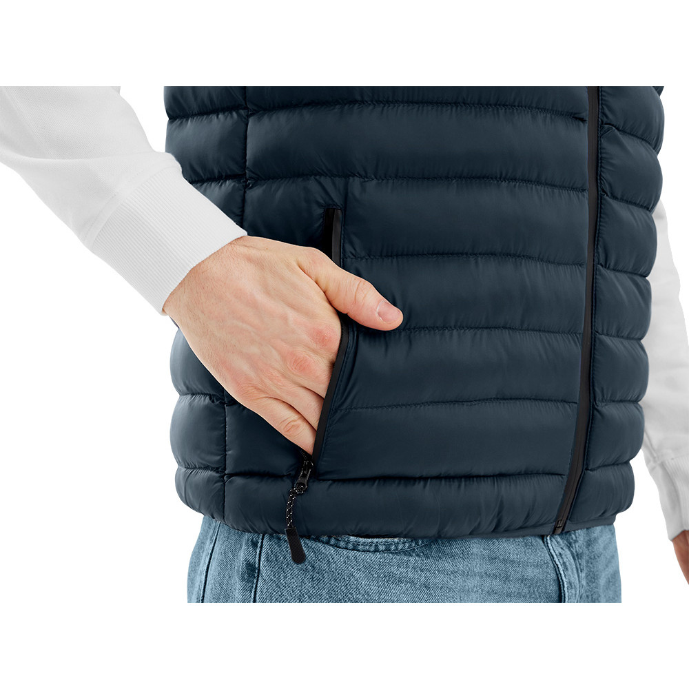 Стёганый мужской жилет — стильный и практичный выбор для повседневной носки и активного отдыха. Модель выполнена из износостойкой ткани с аккуратной стёжкой, которая не только придаёт современный вид, но и помогает удерживать тепло. • Центральная застёжка на водонепроницаемую молнию — защита от ветра и влаги. • Два боковых кармана на молнии для надёжного хранения мелочей. • Воротник-стойка для дополнительного тепла и комфорта в прохладную погоду. • Резиновые пуллеры для удобства использования молний даже в перчатках. • Низ и проймы обработаны тонкой эластичной тесьмой в тон основной ткани — аккуратный внешний вид и комфортная посадка. Лёгкий, тёплый и удобный, этот жилет отлично подойдёт для брендирования и станет универсальной частью корпоративной или промо-одежды.