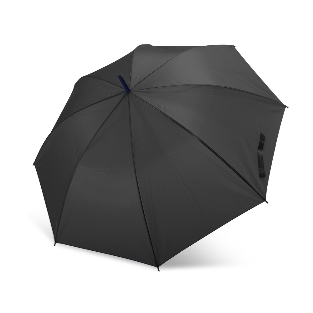 Автоматический зонт с тканью и ручкой в тон. Спицы и наконечники черного цвета. Застежка на липучке. 105 см в диаметре.